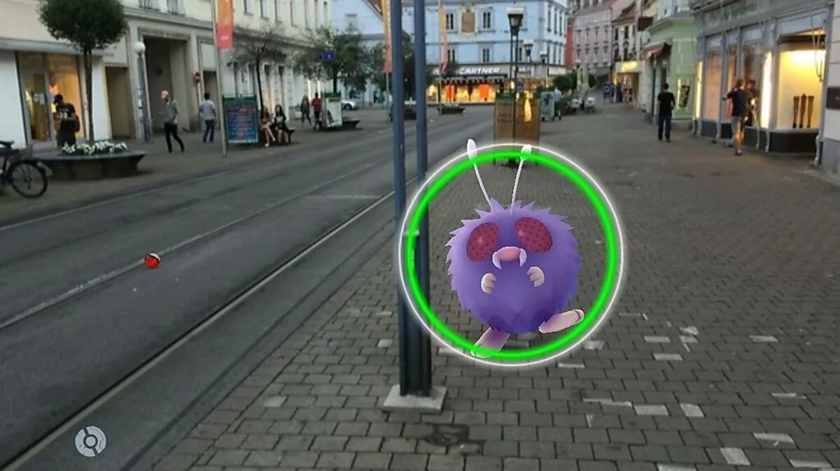 Durch das Handy-Display erscheinen verschiedene Pokémon auf der Straße