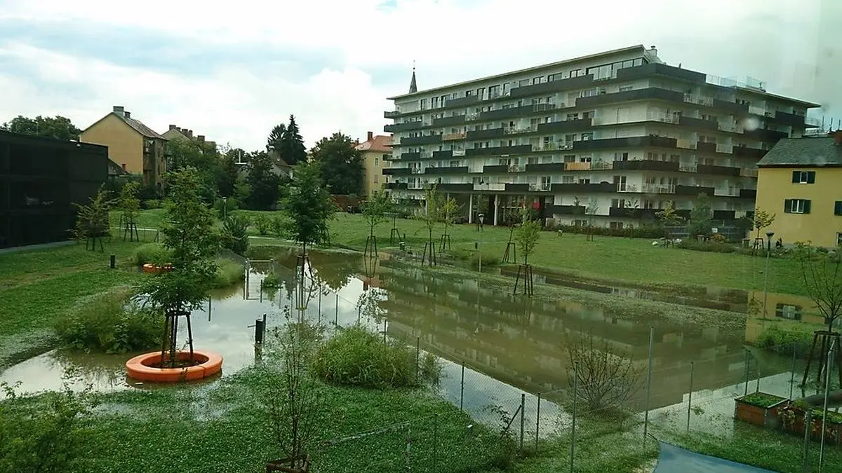 In Graz wurden selbst Parks zu kleinen Seen
