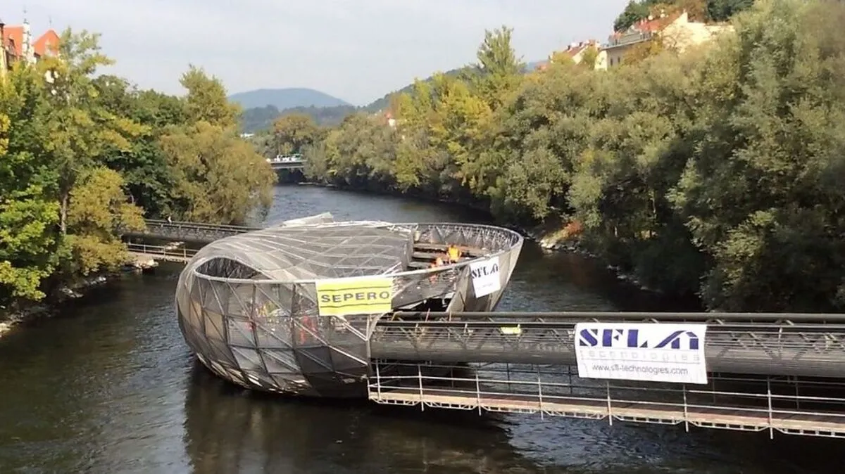 Die Sanierung der Grazer Murinsel um eine Million Euro läuft auf Hochtouren, der Presslufthammer übertönt das Geräusch der Wellen. Die Kleine Zeitung war auf der Baustelle.