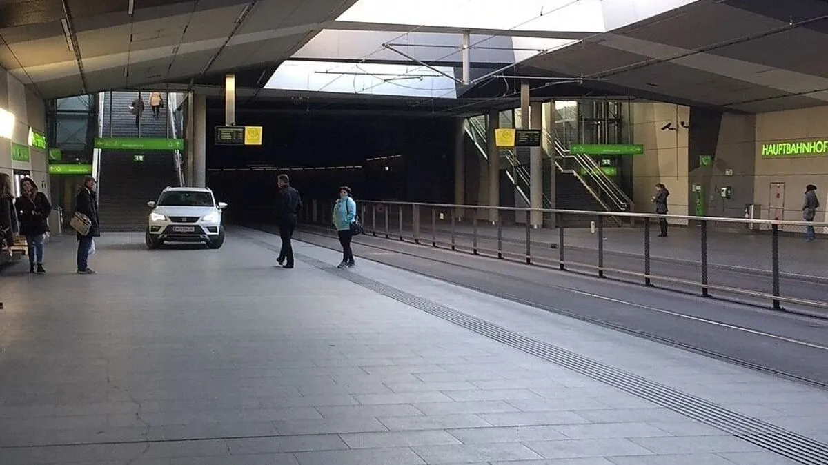 Eigentlich dürfen die Unterführung beim Grazer Hauptbahnhof nur Straßenbahnen benutzen. Doch einmal mehr sorgte hier ein Auto für Aufsehen.