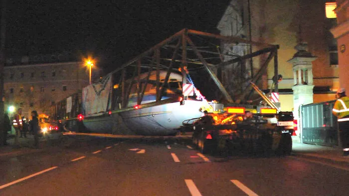 Ein altes russisches Flugzeug wird in Zukunft als Restaurant am Dach eines Grazer Hotels verwendet. Davor musste der 70-Meter-Transport durch Graz rollen.