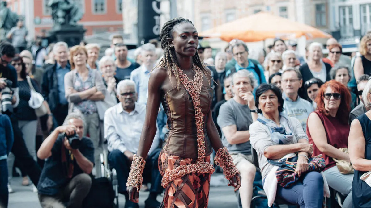 Designer aus drei Kontinenten arbeitete zusammen, um die diesjährige Schau von Crossing Fashion am Grazer Hauptplatz möglich zu machen. Kunst, Musik und Film nahmen die Besucher mit auf eine Reise rund um den Globus.