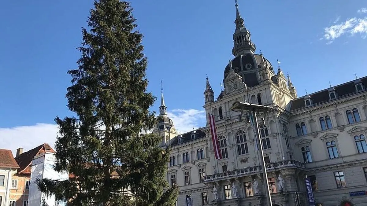 Woher kommt er? Wie groß ist er? Es weihnachtet in Graz: Seit Montagmorgen steht der Weihnachtsbaum am Hauptplatz.