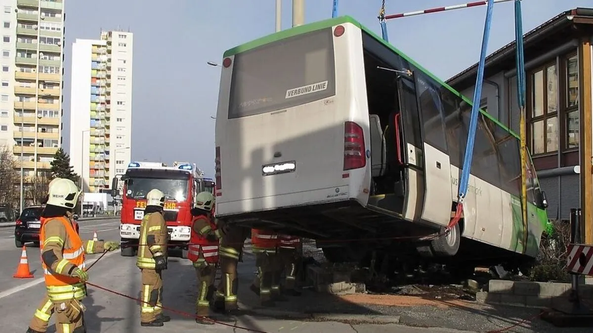 Graz: Linienbus durchstieß Mauer und prallte gegen Fassade