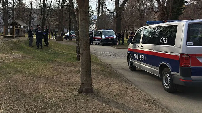 Großaufgebot der Polizei war zum Start der Schutzzonen im Grazer Metahofpark und im Volksgarten präsent.