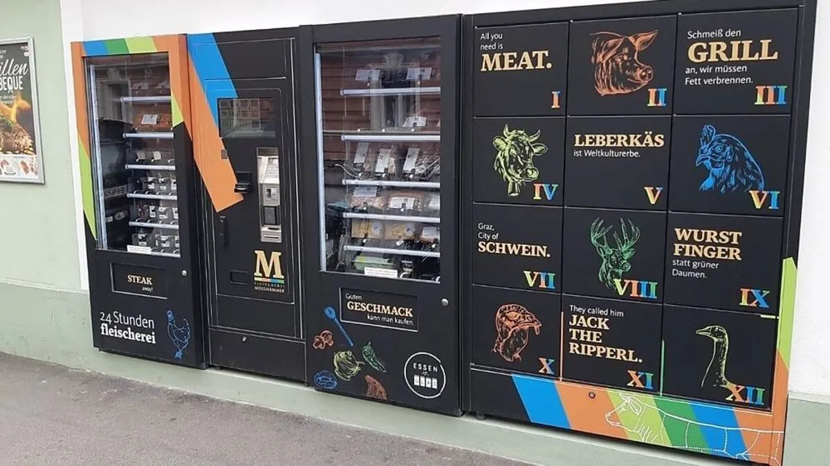 24-Stunden-Fleischautomat mit Schließfächern
