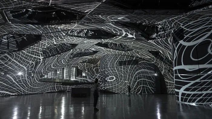 Finde den roten Faden! Peter Kogler schickt in „Connected“ im Grazer Kunsthaus die Besucher auf eine Spurensuche zwischen Herzrasen und beglücktem Herzhüpfen.