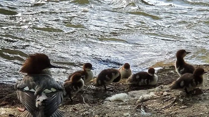 Sie sind derzeit die Stars der Grazer Natur. Wir haben die Gänsesäger-Familie beim jüngsten Ausflug gefilmt.