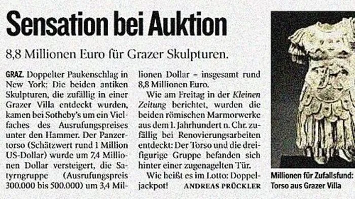 Heute vor zehn Jahren wurde Sensationsfund aus Graz in New York versteigert - um acht Millionen Euro.