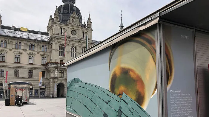 Die zwölf Hauptplatz-Stände werden mit 24 neuen Fotografien von Sehenswürdigkeiten verkleidet. Joaneums-Chefkuratorin Elisabeth Fiedler übt scharfe Kritik.