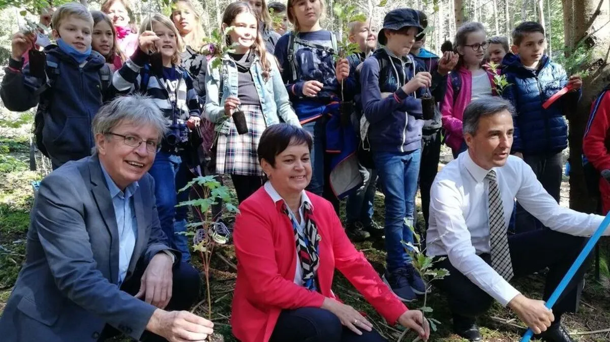 In Hohenrain setzten Grazer Volksschüler heute Bäumchen ein - ein Zeichen für Biodiversität und gegen Rassismus, wie es heißt.