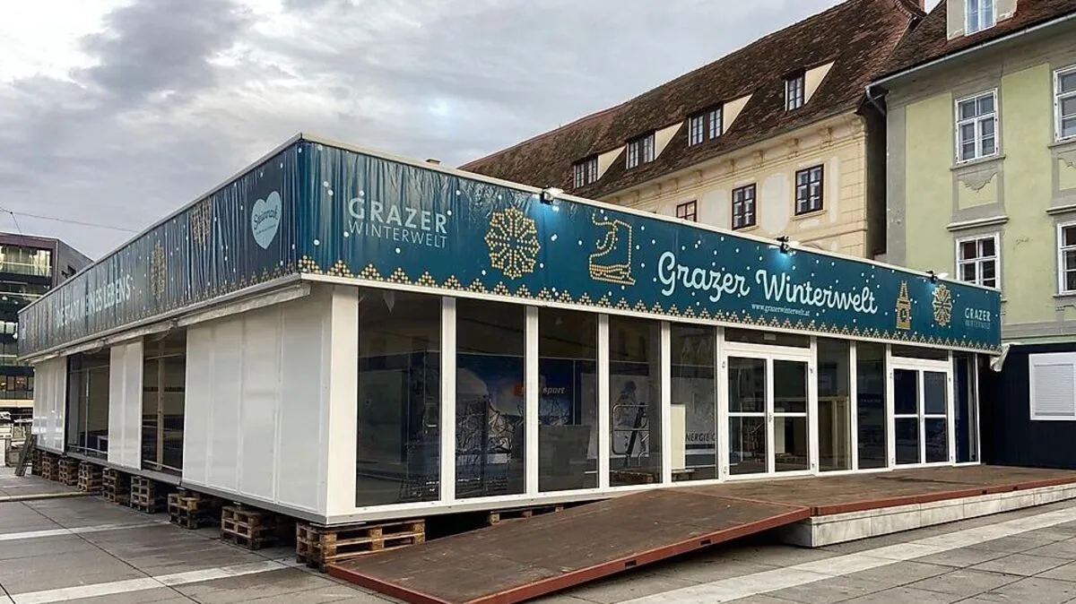 Der Aufbau für den Eislaufplatz auf dem Karmeliterplatz beginnt. Organisator Wolfgang Mally ist für den 7. Dezember bereit.
