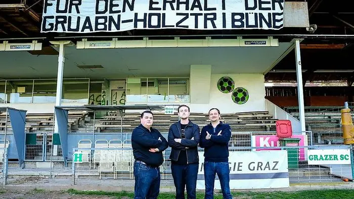 Sie wurde 1934 errichtet und hat seither Unmengen an legendären Fußballspielen erlebt. Die Holztribüne der Sturm Gruabn - ist österreichweit ein absolutes Unikat - sie ist aber auch arg gefährdet. Seit einigen Jahren versuchen drei "schwarze Herzen" namens Josef Schuster, Markus Hatzl und Benjamin Sikora die Tribüne zu retten.