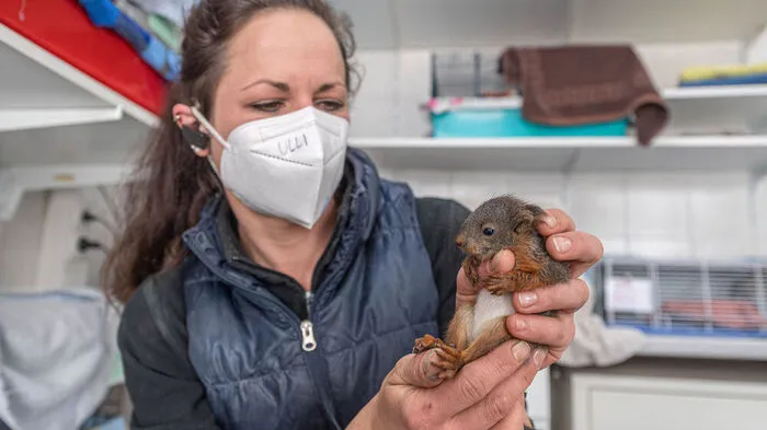 Ulrike Odreitz von Kleine Wildtiere in Not versorgt ein Eichhörnchen