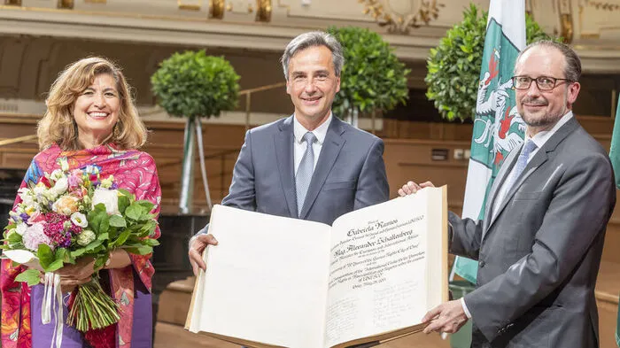 Zwanzig Jahre Menschenrechtsstadt: Unesco-Vertreterin Ramos und Minister Schallenberg kamen Bürgermeister Nagls Einladung zur Eintragung ins Goldene Buch der Stadt Graz nach