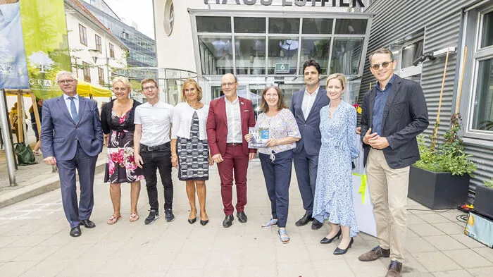 Eröffnung Haus Esther: v.l.n.r. Johann Harer, Norma Rieder, Stadtrat Robert Krotzer, Andrea Fink, Gerd Hartinger, Bürgermeisterin Elke Kahr, Wolfgang Kratky, Iris Knausz, Günter Hirner