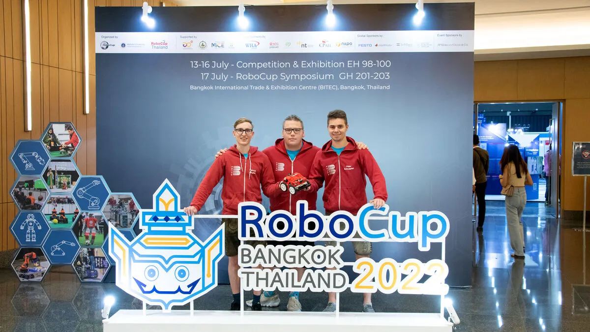 Wurden bei der Robocup-WM in Bangkok ausgezeichnet: Das Team B.Robots mit Sebastian Pfusterer, Patrick Ziegler und Peter Schuppler
