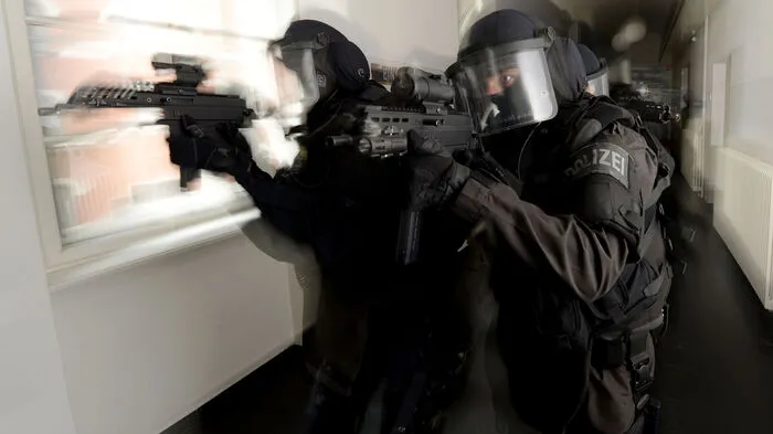 Wegen der gefährlichen Drohung am Telefon waren das Einsatzkommando Cobra, die schnellen Reaktionskräfte und Polizeihunde bei der Festnahme des Mannes dabei