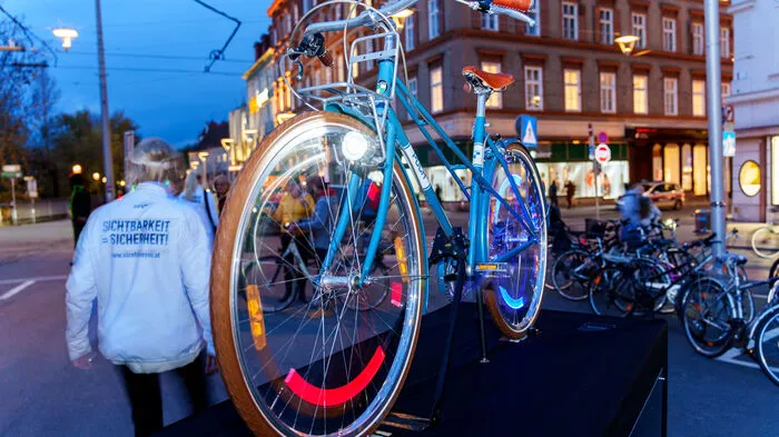Gratis-Leuchten sollen Radler sichtbarer machen – und zum Nachdenken anregen.