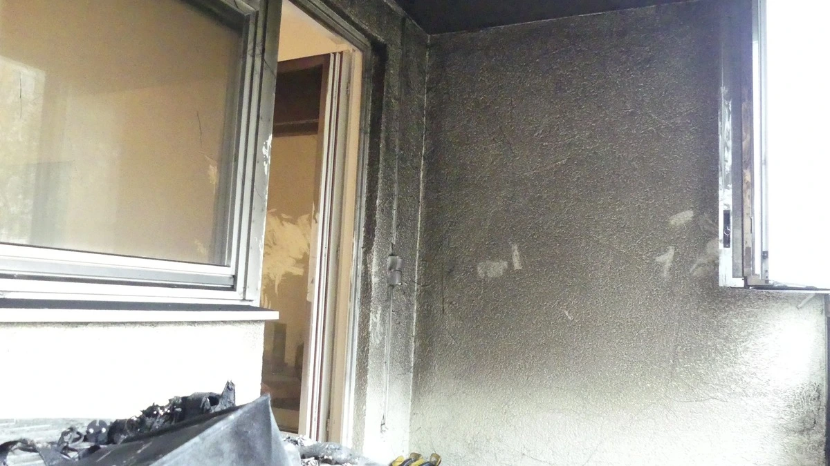 Auf Balkon in Mehrparteienhaus brach ein Brand aus