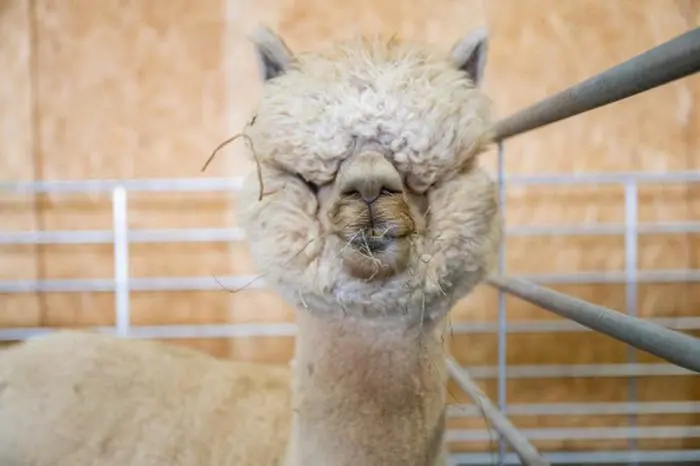 Kinder, Paare, junge Alpakabesitzerinnen, alle setzen ein breites Grinsen auf, sobald die Alpakas den "Showring" betreten. Es ist eine eigene Welt, in die man bei dieser Messe eintaucht. Eine Welt, in der scheinbar die meisten bei bester Laune sind und die flauschigen Tiere umarmen wollen. Die Zeit auf der Bühne macht den Alpakas dann aber eher Stress – nach fünf Minuten zucken sie immer wieder zurück, die meisten Tiere fühlen sich sichtlich unwohl. Eine Züchterin erklärt, dass die Alpakas in dieser Stresssituation nach ihren "Herdenpartnern" suchen. Das weiße und braune Alpaka kennen sich anscheinend bestens und drehen inmitten der aufgeregten Menschen immer wieder die Köpfe zueinander. Ob sie wissen, dass sie gerade an einem spannenden Schönheitswettbewerb teilnehmen?