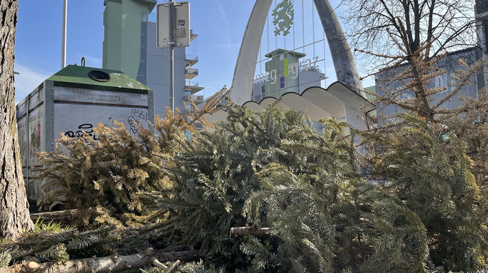 Eigentlich wurden die Christbaumsammelstellen mit 22. Jänner geschlossen. Aber noch heute liegen an vielen Stellen alte Bäume. Die Holding transportiert die Bäume nach und nach bis in den März hinein ab.
