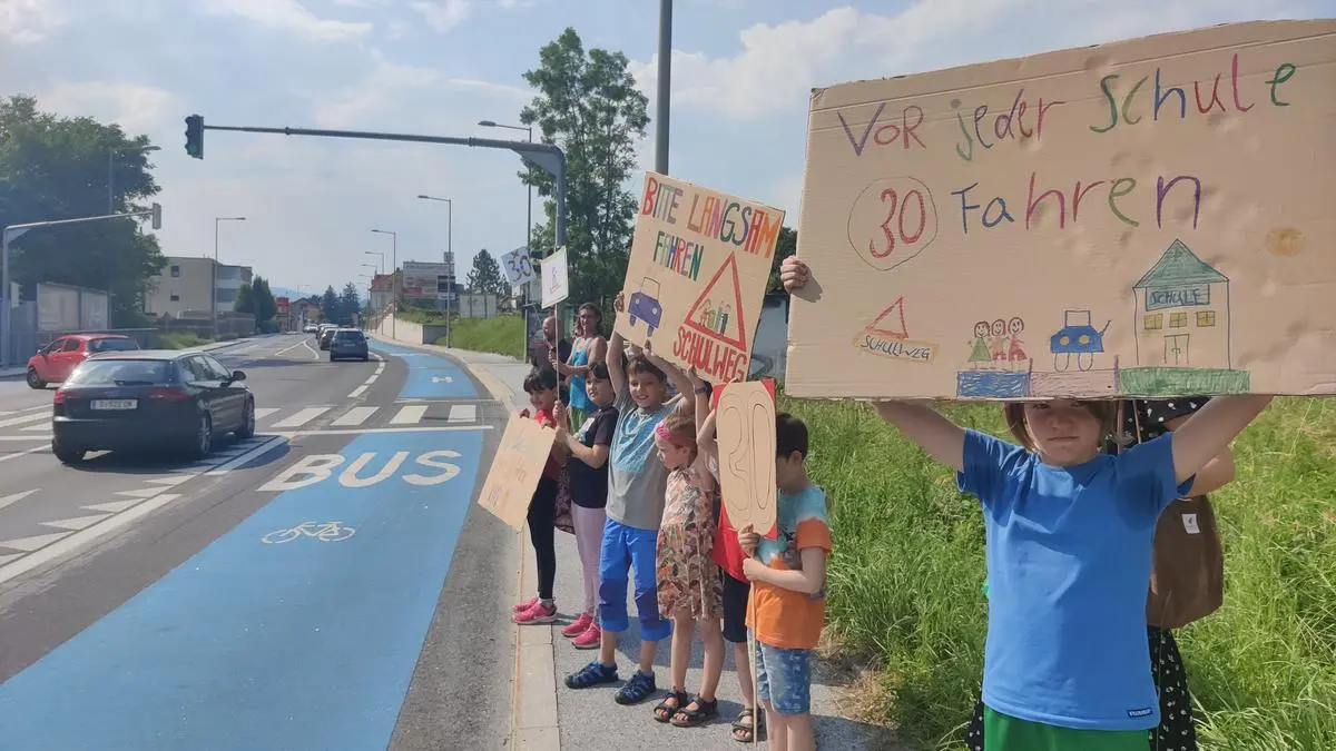 Im Februar wurde Tempo 30 vor der Waldorfschule in der St. Peter Hauptstraße gerichtlich gekippt, die Schülerinnen und Schüler wollen es aber zurück. Sie demonstrierten am Montagnachmittag für die Temporeduktion.