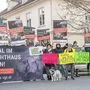 Aktion in der Grazer Herrengasse prangert Vollspaltenböden an