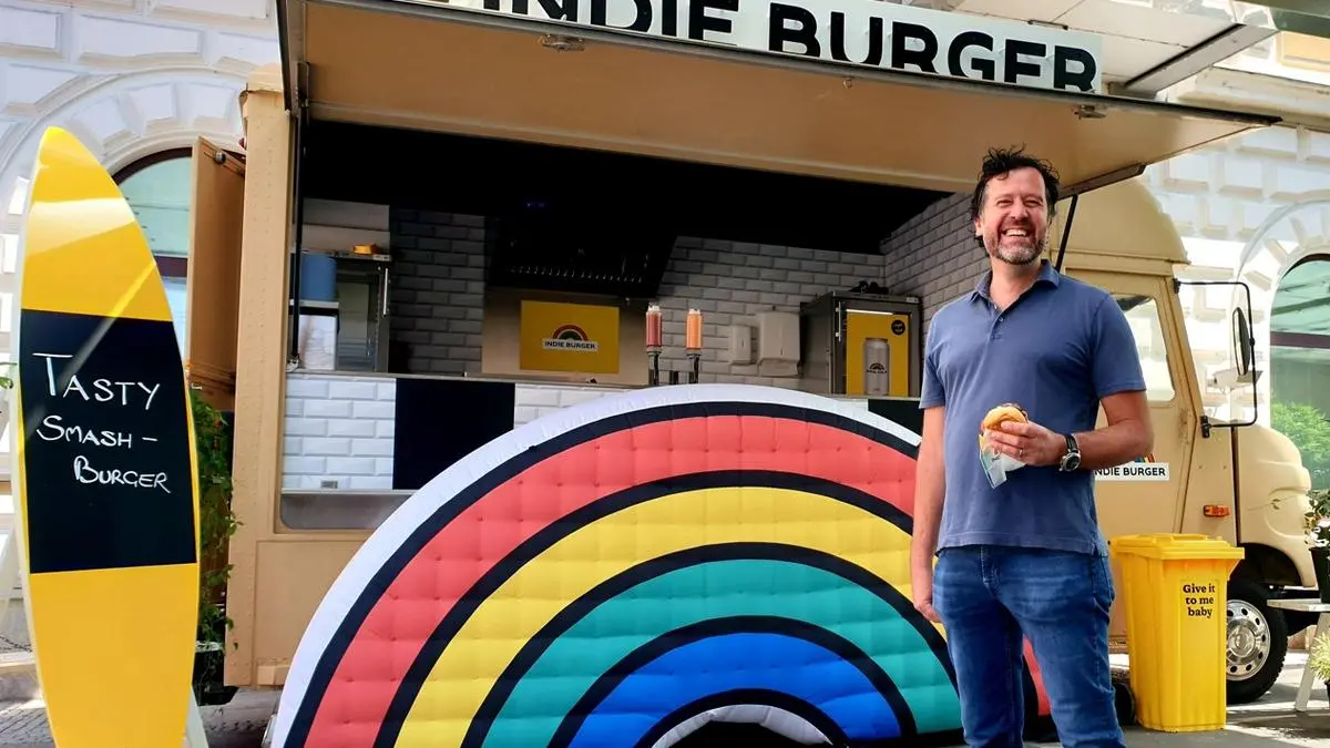 Liegt es an der Sonne, an der Vorfreude auf den fast noch geheimen Neustart oder doch am lässigen Foodtruck im Hintergrund? Florian Weitzer ist jedenfalls an diesem Mittwochnachmittag bestens gelaunt: Zwischen herzhaften Probebissen vom Burger verrät er der Kleinen Zeitung seine jüngsten Projekte – denn der cremefarbene Bus ist buchstäblich ein Vorgeschmack auf jenes Lokal namens Indie Burger, das Weitzer in der Sporgasse eröffnet.