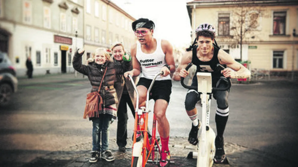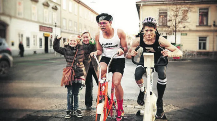 Der "Shared Space" war für zwei Grazer Studenten der perfekte Ort um sich auf den Heimtrainer zu setzen und am Stand zu radeln. Aber wieso das Ganze? Von Michael Kloiber