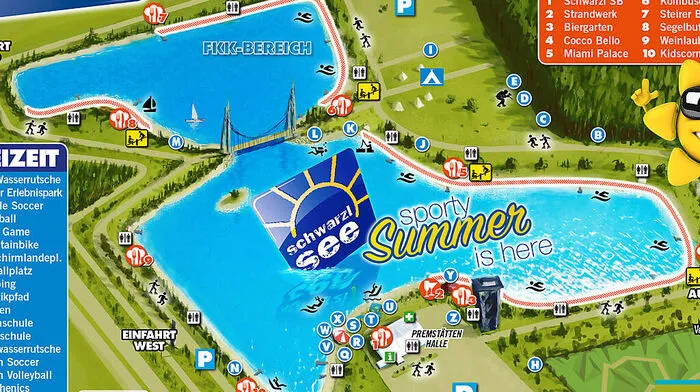 Unter dem Motto „Alles neu am Schwarzlsee“ eröffnet das Areal am 5. Juni. Nach einer Millioneninvestition mit der größten Wasserrutsche der Welt, dem ersten
