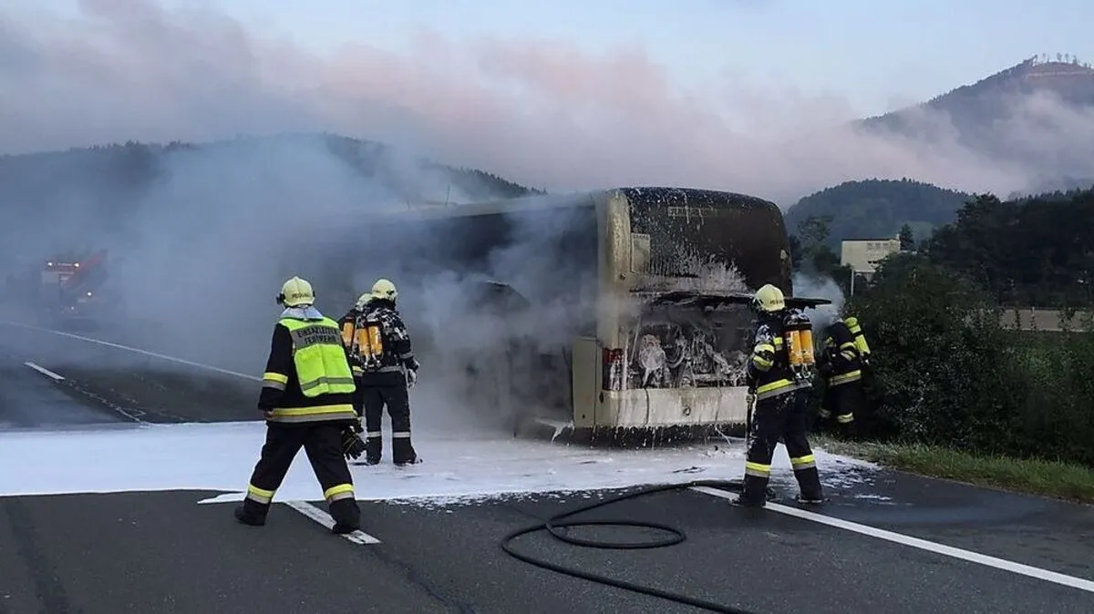Bus brannte auf Brucker Schnellstraße