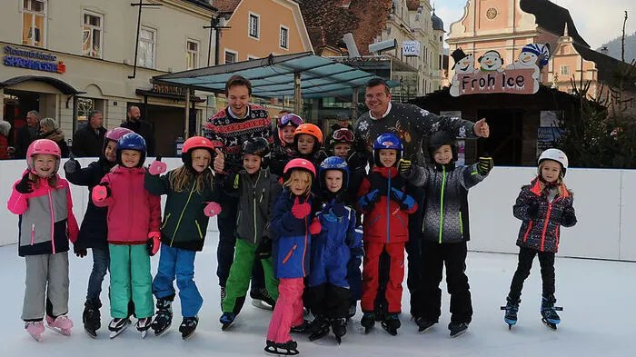 Kein Schnee in Sicht. Na und? In Frohnleiten kurven die Eisläufer trotzdem.