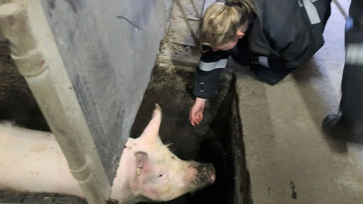 Schwein gehabt: Feuerwehr befreit Sau aus Kanalschacht