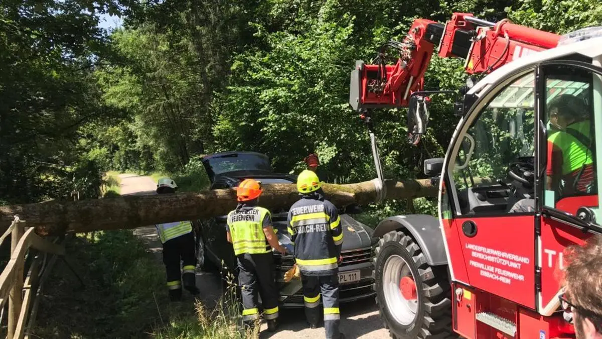 Schock für Lenker: Gewaltiger Baum stürzte auf fahrendes Auto