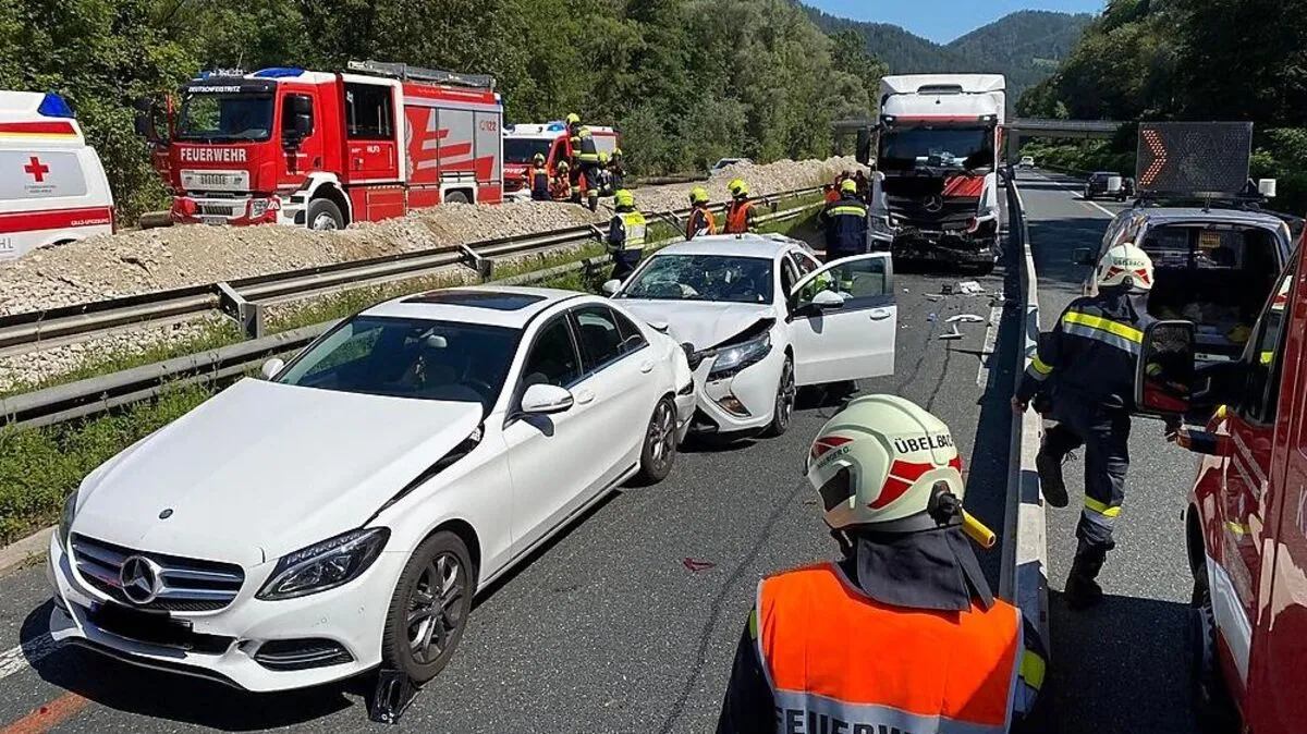 Bei Übelbach kam es am Mittwochmittag im Baustellenbereich der Autobahn zu einem Unfall mit drei beteiligten Fahrzeugen. Mehrere Personen wurden verletzt.