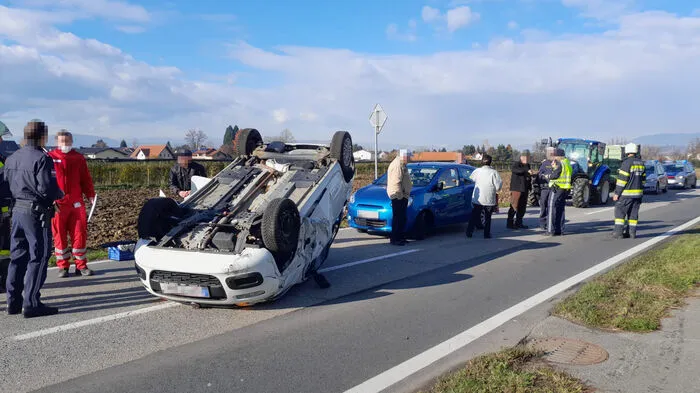 Montagmittag ist es in Grambach zu einem Verkehrsunfall gekommen. Ein Pkw blieb dabei am Dach liegen - der Lenker war aber wie durch ein Wunder unverletzt geblieben und konnte sich selbst aus dem Auto befreien.