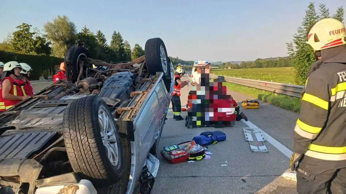 Schwerer Unfall auf A 2 bei Nestelbach: Pkw landete am Dach
