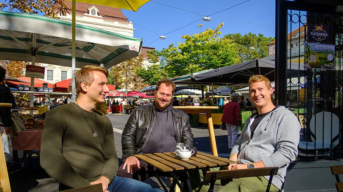 Neues Lokal am erneuerten Platz: Valentin, Florian und Simon Abt sperren am Kaiser-Josef-Platz den "Platzhirsch" auf.
