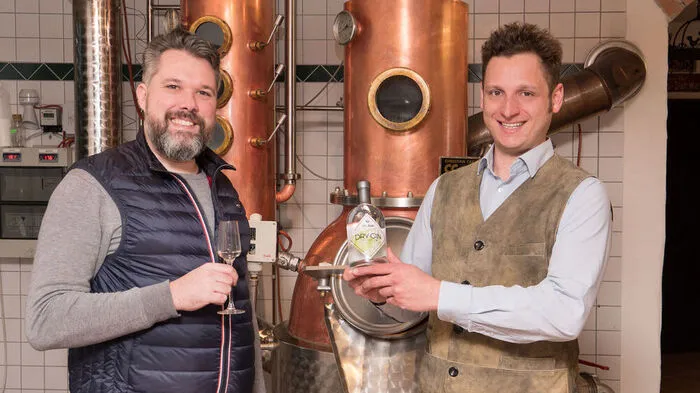 Pietro Scala (links) ließ mit Hilfe von Lukas Schüller in dessen Brennerei in Maria Taferl seinen Traum des eigenen Gins wahr werden lassen