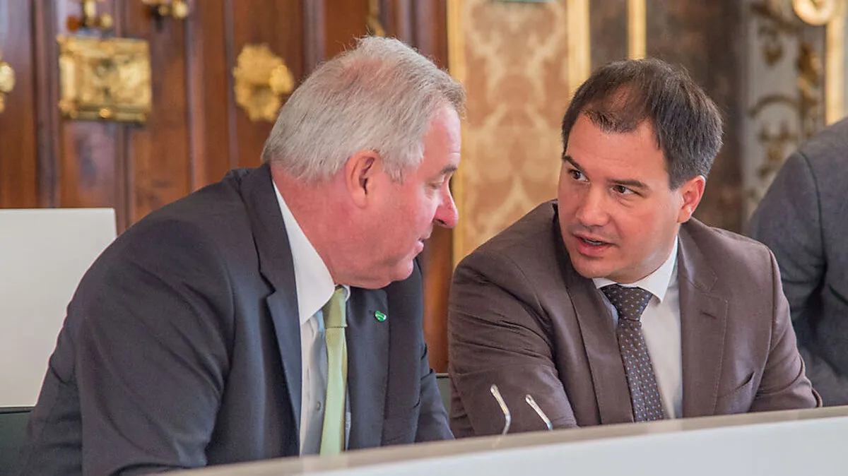 Abseits der Landtagssitzung trafen sich Landeshauptmann Hermann Schützenhöfer (ÖVP) und Vize-LH Michael Schickhofer (SPÖ) zu einem ernsten Gespräch über die steirischen Finanzen.