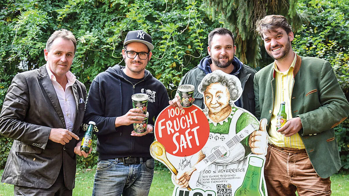 red Kendlbacher, Mike Reiter, Philipp Maier und Ries Bouwman (von links) von Omi‘s Apfelstrudel erweitern nun ihre Produktpalette um ein Apfelstrudel-Fruchtsaft-Eis, das ab Anfang November erhältlich sein wird