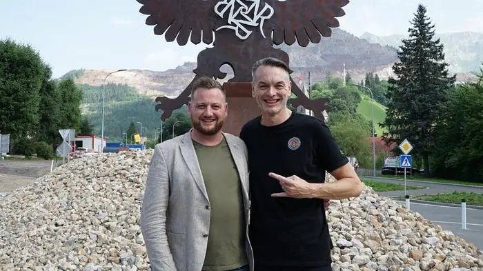 Eine Höhe von 4,20 Metern, eine Spannweite von 3,85 Metern und 2,8 Tonnen schwer – das sind die Eckdaten der neuen Doppelkopfadler-Skulptur inmitten des Eisenerzer Kreisverkehrs, die für den Napalm Records-Gründer Markus Riedler anlässlich der Verleihung seiner Ehrenbürgerschaft errichtet wurde. „Wenn man von der Stadt, in der man aufgewachsen ist und seine schulische Ausbildung gemacht hat, solch eine Anerkennung bekommt, ist das natürlich schon etwas Wunderschönes und berührt einen zutiefst“, schildert Riedler und fügt hinzu: „Und es ist wirklich cool, wenn man auf seinem täglichen Arbeitsweg an seiner eigenen Skulptur vorbeifahren kann.“