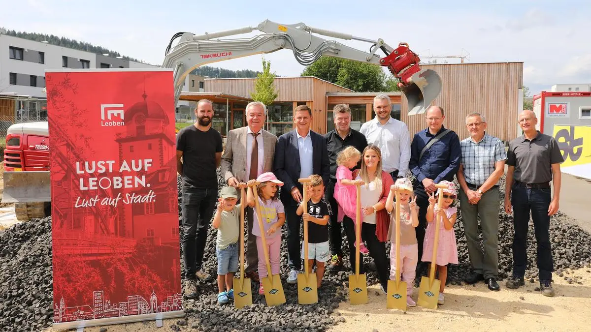 Am Donnerstag erfolgte der offizielle Baustart für die nächste Ausbaustufe des Kindergartens Mühltal in Leoben. Den Betrieb soll er im Kindergartenjahr 2025/2026 aufnehmen.