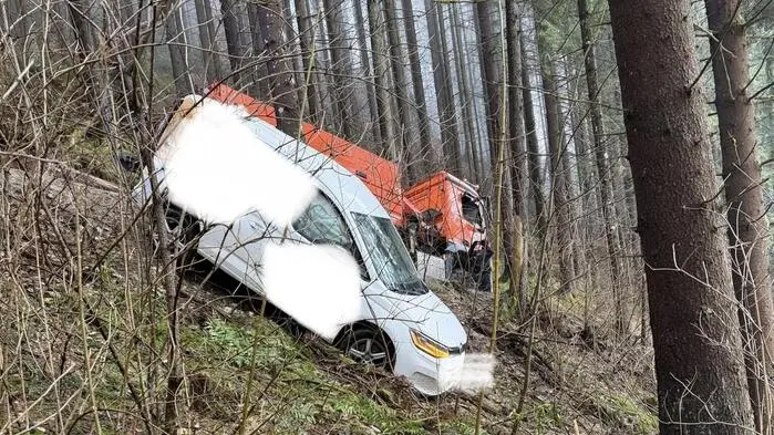 Donnerstagfrüh rutschte ein Arbeiter wegen Glatteis auf dem Weg zum Mugelschutzhaus zwischen Niklasdorf und Leoben ab. Er konnte sich retten, indem er aus dem Fahrzeug sprang.