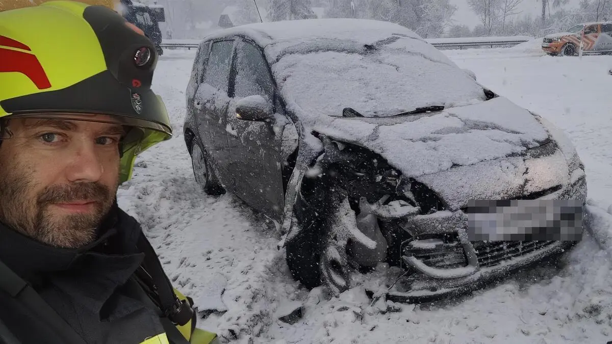 Während die Einsatzkräfte am Freitag eigentlich damit beschäftigt waren, im Schneechaos hängengebliebene Fahrzeuge vor dem Gleinalmtunnel abzuschleppen, bemerkte ein Feuerwehrmann eine weitere Gefahr.