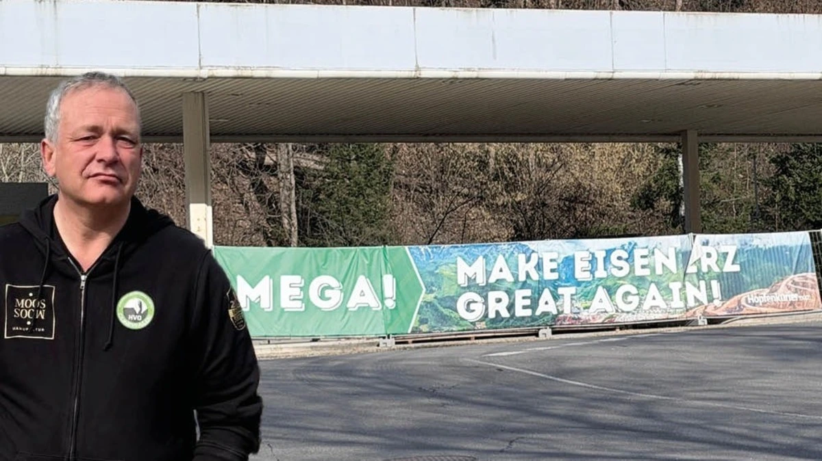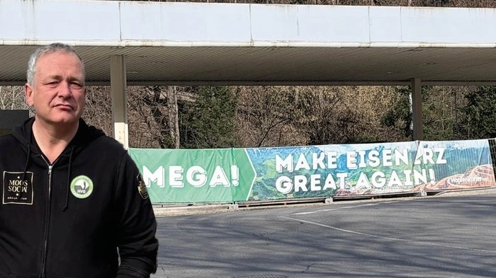 • Ein großes Transparent mit der Aufschrift „MEGA – Make Eisenerz great again“ sorgt für Rätselraten in der Bevölkerung.
