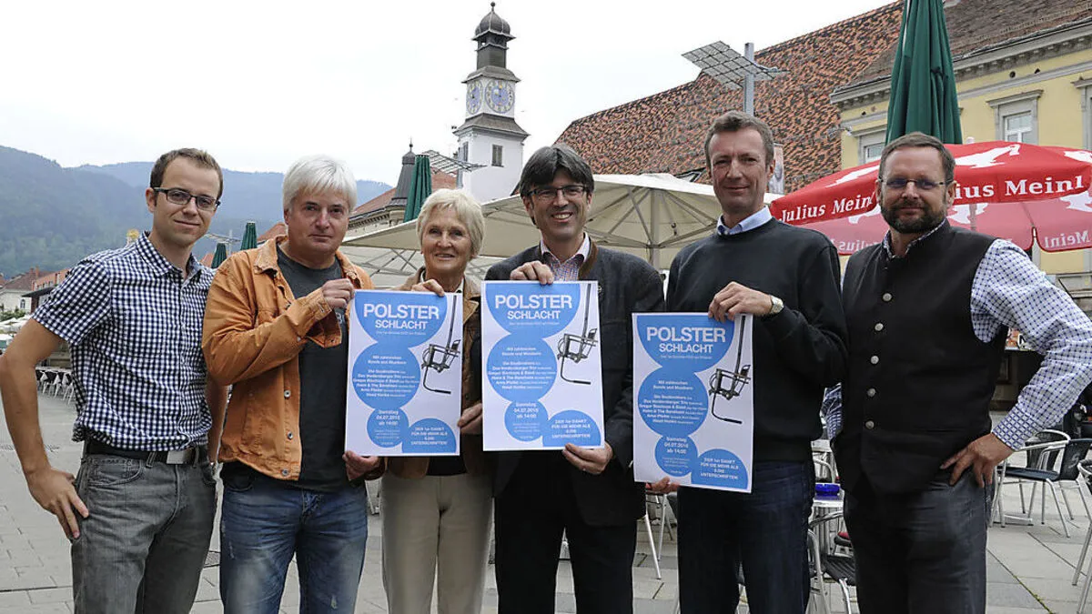 Tom Leitner vom Soaring Club Präbichl, Werner Schanda, Traudl Reska sowie Martin Karner, Herwig Emmerstorfer und Günther Proksch vom Komitee zur Rettung des Polsterlifts (von links)
