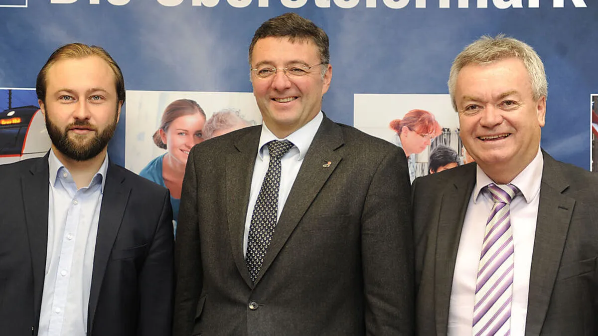 SP-Landesgeschäftsführer Max Lercher, Infrastrukturminister Jörg Leichtfried und Verkehrslandesrat Anton Lang (von links)