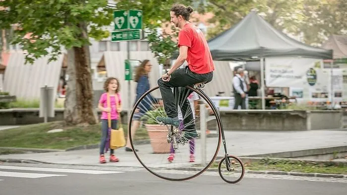 Beim Radfest gibt es auch die Möglichkeit, ein Hochrad auszuprobieren